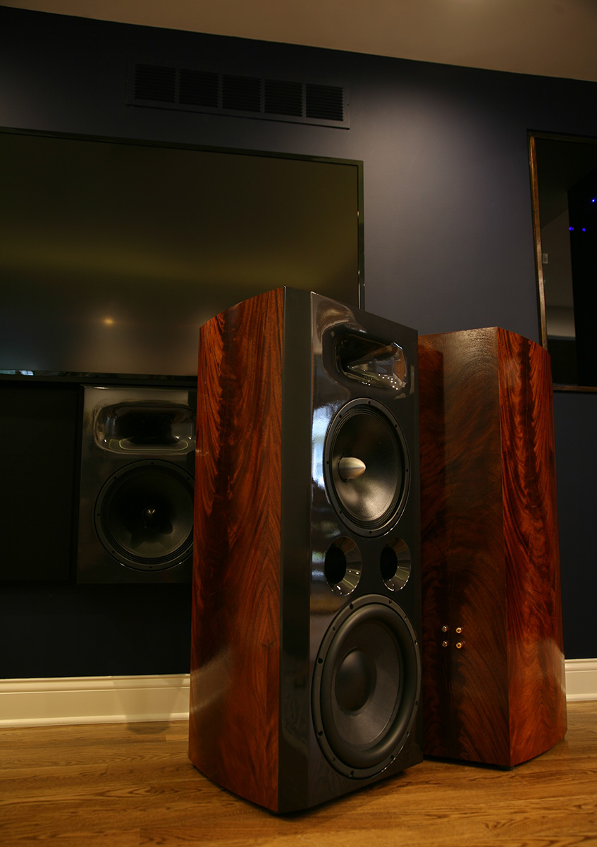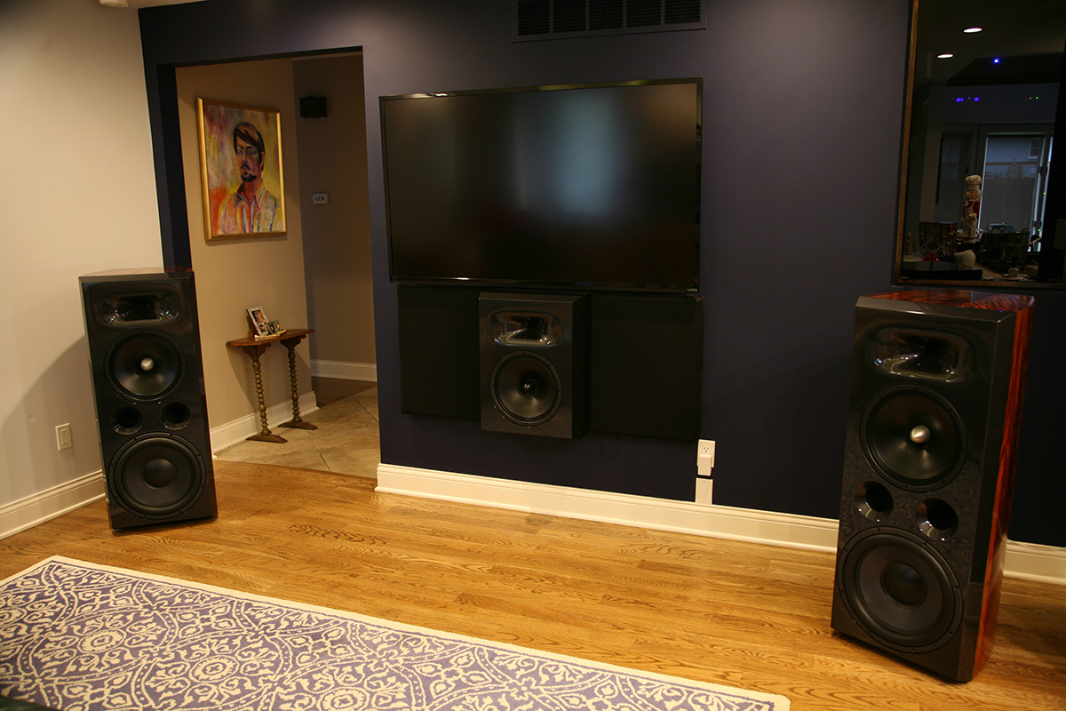 “When I designed my media room, I wanted from my audio system a full range of powerful response – from thunderous, tactile bass, smooth mids, and delicate highs at every seat in the room that measures ruler flat at all listening levels. This room is the main entertaining area in our home where we spend time as a family watching movies and listening to music, and entertaining friends. The goal was to keep as much of the A/V equipment out of sight to avoid having the “speaker store” look. I listened to a pair of speakers that blew me away at a fellow audiophile’s home designed by Bill Waslo using the AE TD12M and SEOS12 waveguide and Denovo DNA-360 compression driver. These speakers had everything I was looking for so I ordered all the xo parts, drivers, and other essentials.”