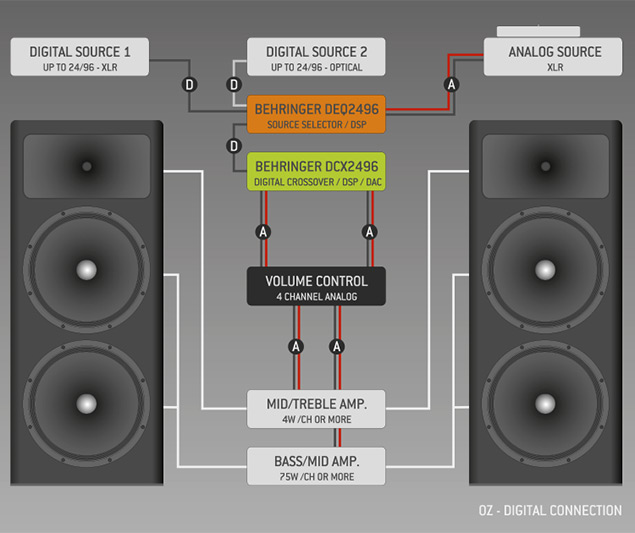 OZ* is an unique, custom made, hedonistic loudspeaker system consisting of a pair of open active speakers and DSP.