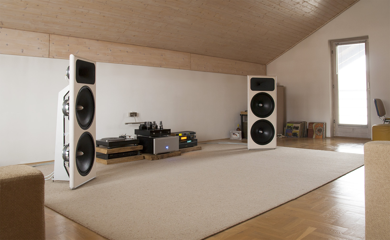 Imagine what you get with a system that uses main parts good enough for 100.000 EUR home speakers and real top quality studio monitors, a system that is adjustable to your room and your needs as much as it is possible by today’s technology, with 24/96 resolution.