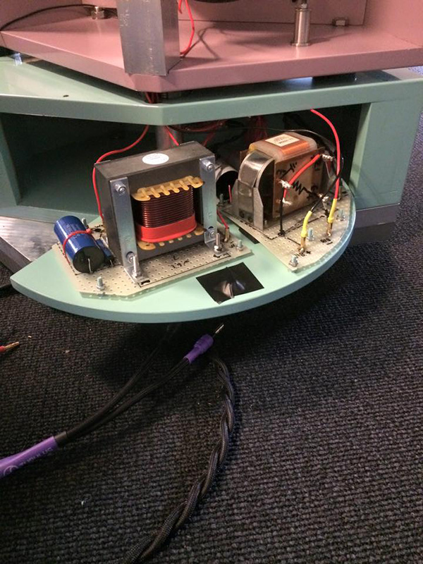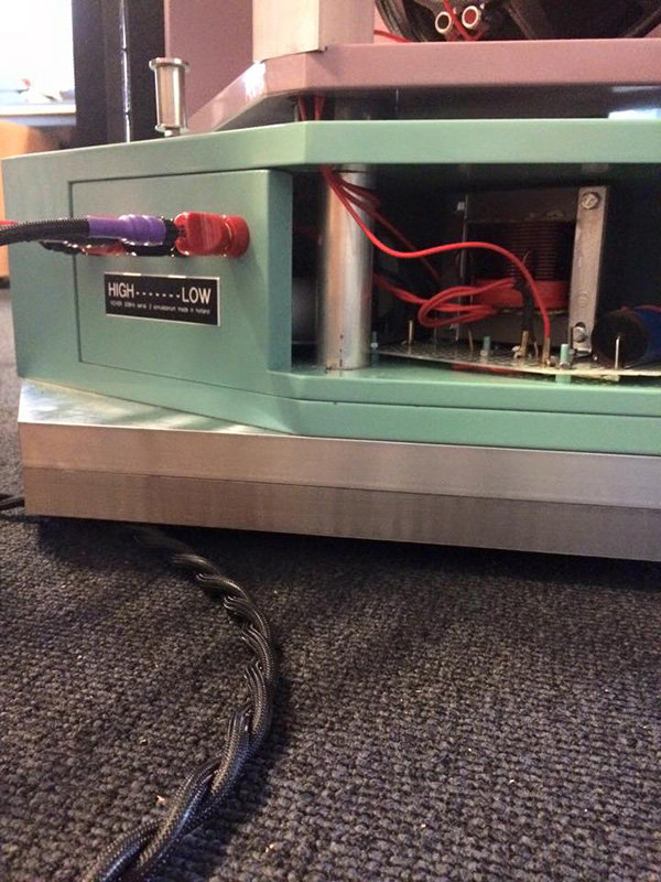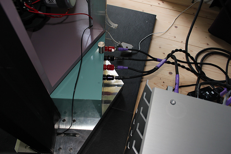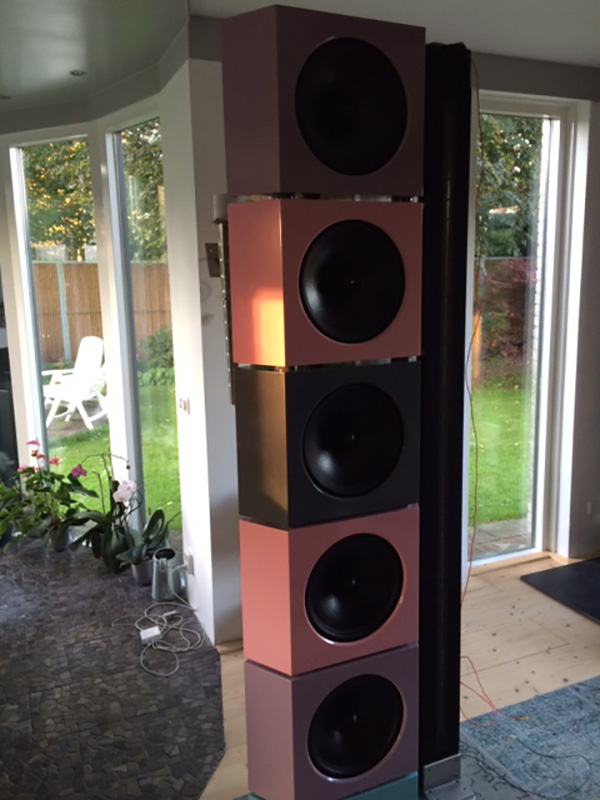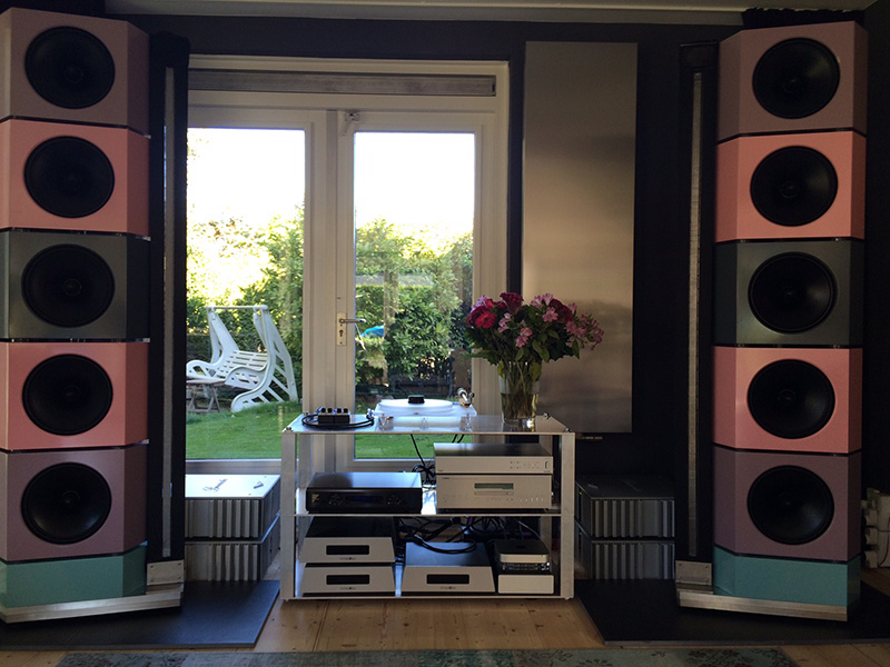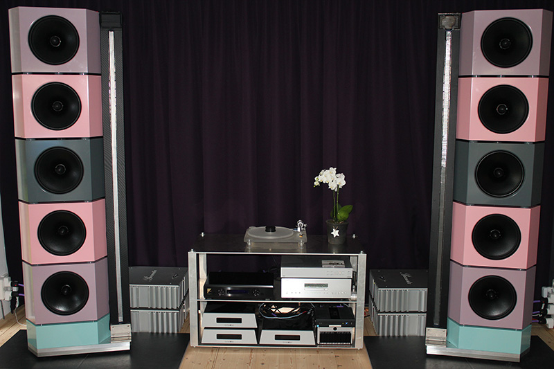 “Each single woofer sub assembly weighs a little over 40 lbs. The ribbon assembly weighs 120 lbs. The steel/aluminum pedestal weighs 200 lbs. Ludicrous numbers that result in the absolute best speaker system I have ever heard. The measurements show only straight lines for frequency and phase. THD of less then 0.2%…! Absolute precision and speed produce an extremely wide stage that opens up as soon as my four Burmester 956 Mk2 amps start pumping electrons into these monsters. The speed of the 8um ribbon is from out of this world. No other mid/high driver (except maybe some other ribbons) will sound better. Combined with the best woofers mankind ever produced, this system will give you a listening experience that you will never ever forget. AND WITHOUT THE USE OF FANCY DSP’s…!!! I used simple 12dB/octave filters (LR2) at 538Hz. Only high class capacitors and coils of course. The low pass filter has a Mundorf Zero Ohm with just 0.09 ohms, which combined with the 2500 plus damping of the powerful Burmesters results in absolute control over the lows.